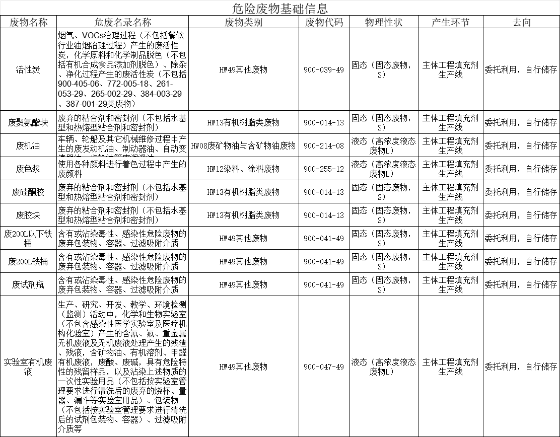 危险废物基本信息表